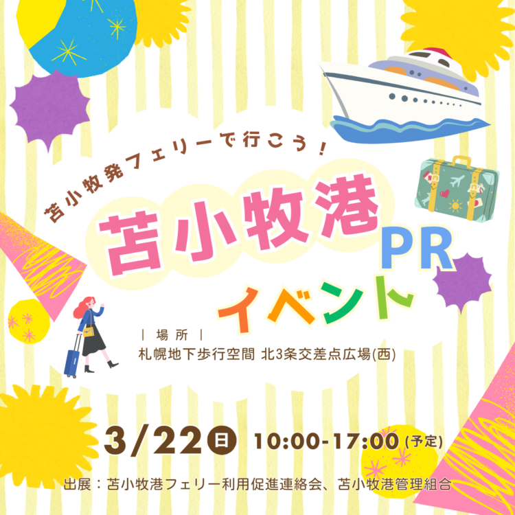 三連休の最終日、3/22(日)に札幌地下歩行空間で「苫小牧港PRイベント」を苫小牧港フェリー利用促進協議会と一緒に実施します!